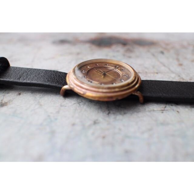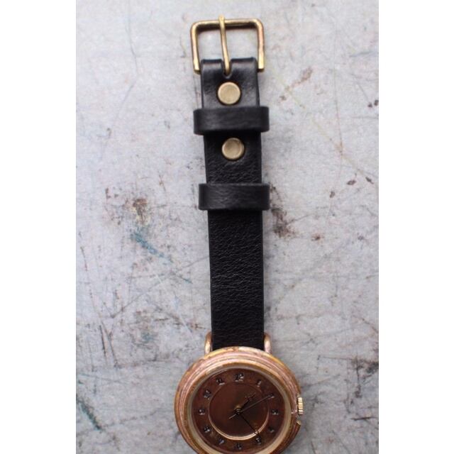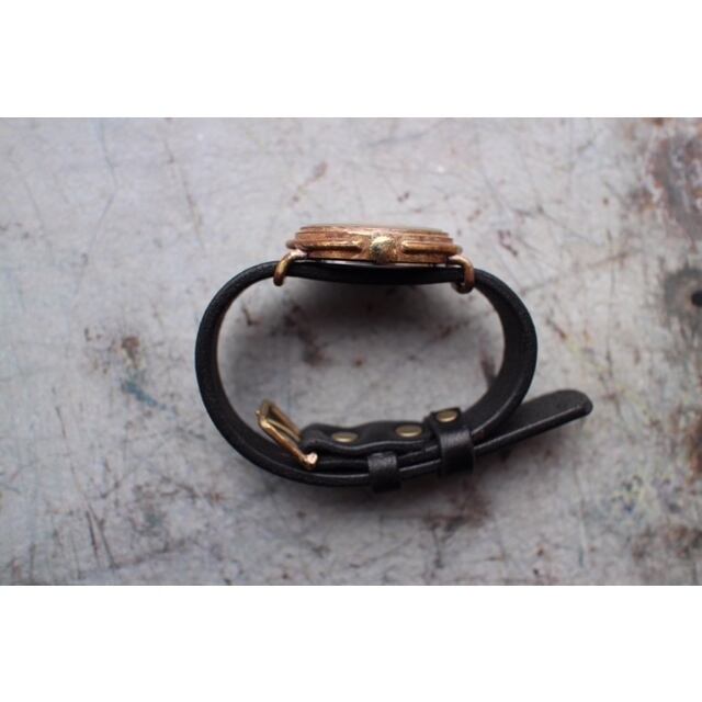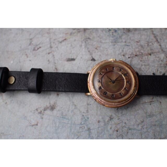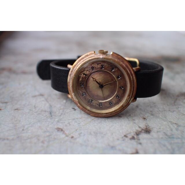 真鍮の文字盤に一つ一つ数字を刻印した腕時計です。真鍮の文字盤の雰囲気を存分に楽しめます。使い込むほどに味の出てくる時計です。
