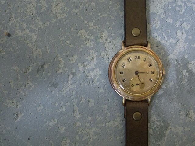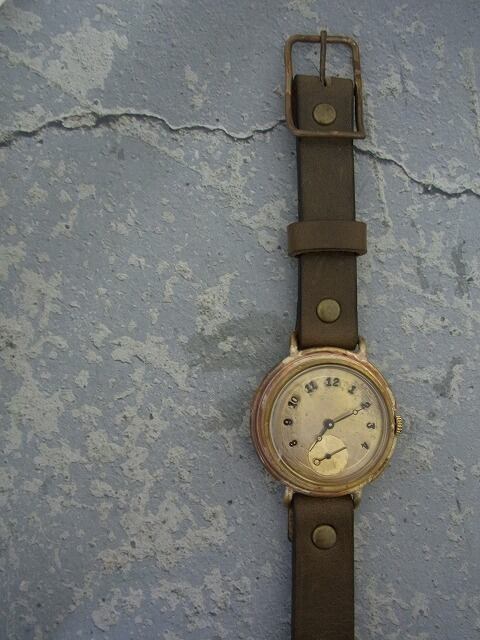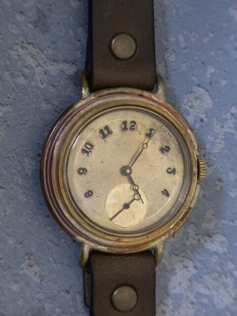 真鍮に数字を刻印をした味のある文字盤が特徴的な腕時計です。秒針が別にあるスモールセコンドタイプのムーブメントです。