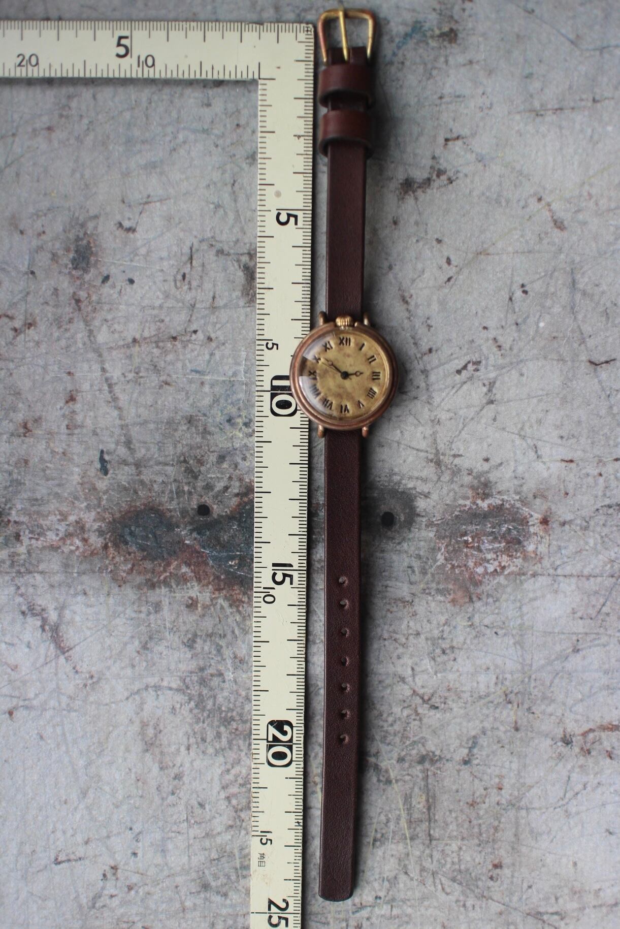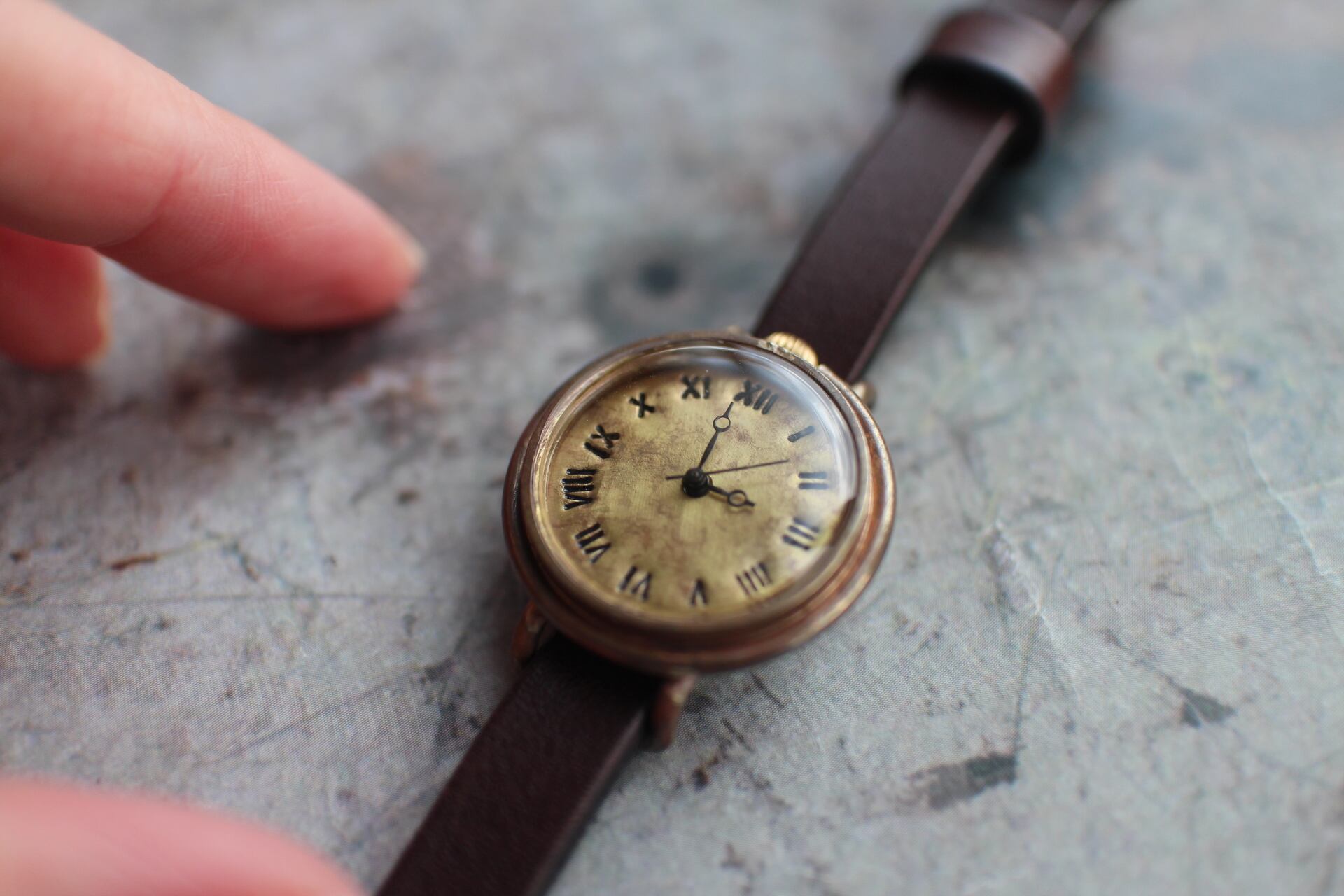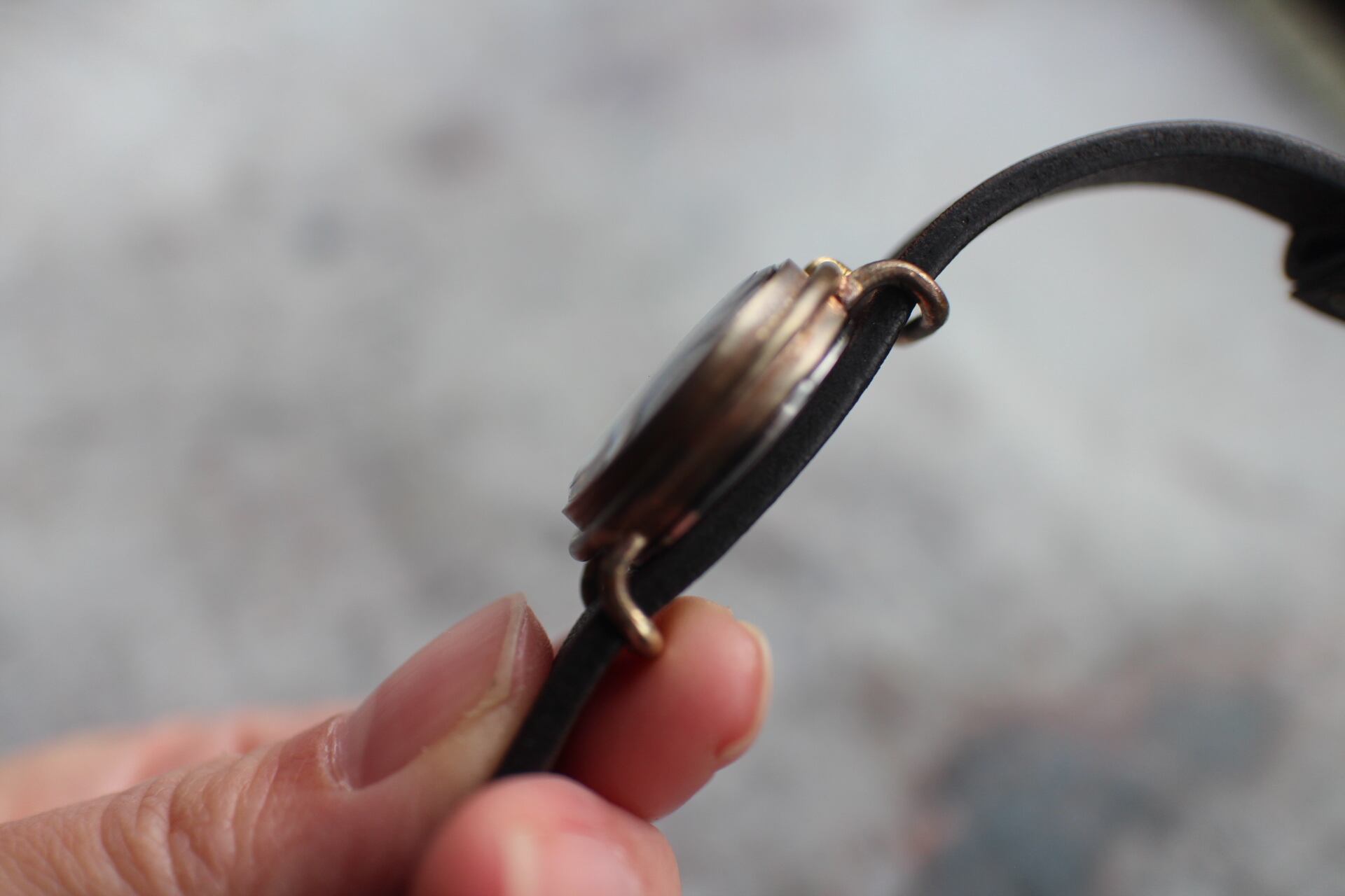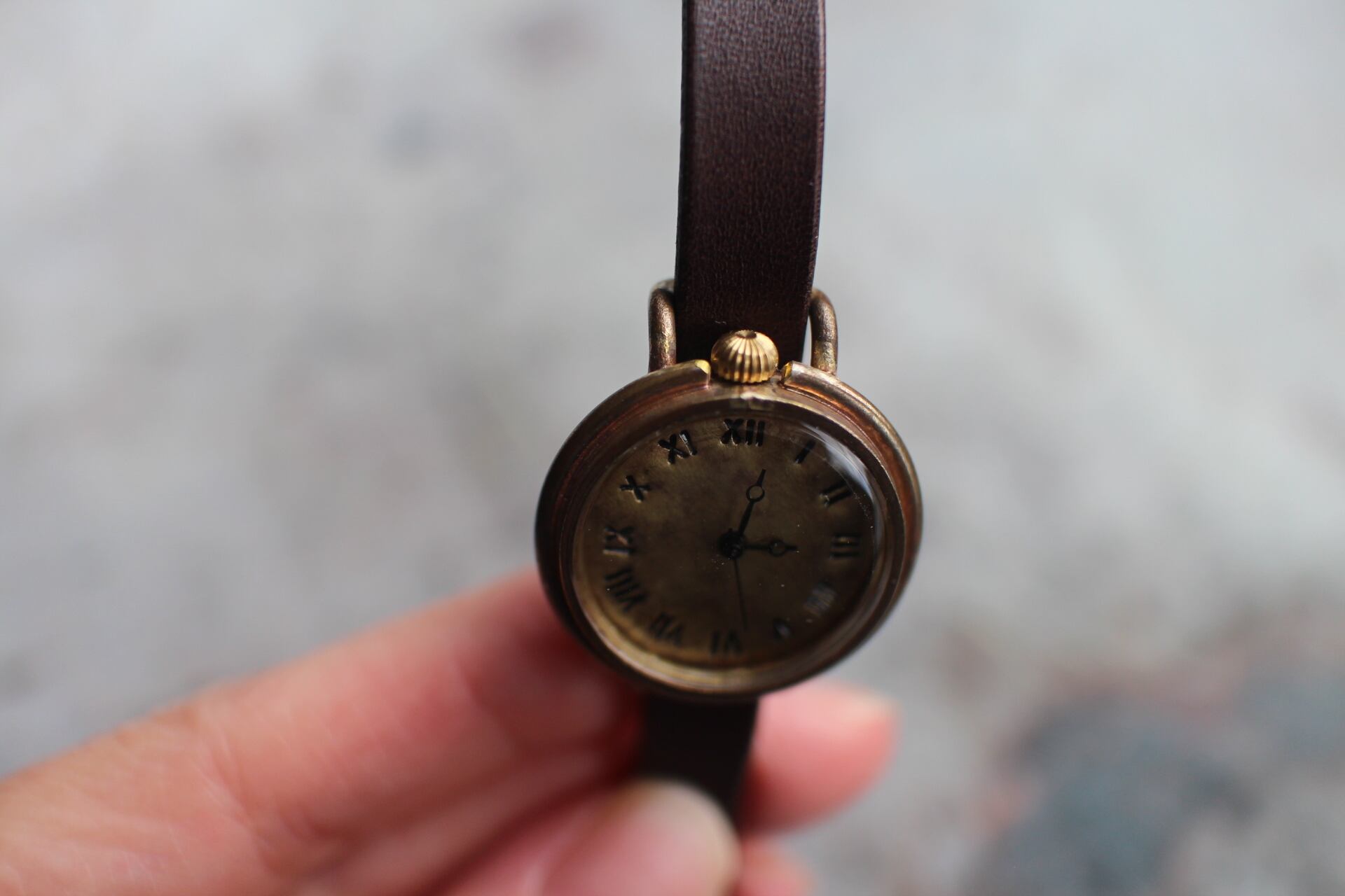 真鍮の刻印文字盤がシンプルでありながらも存在感を持ち、どんなスタイルにも合わせやすいです。