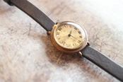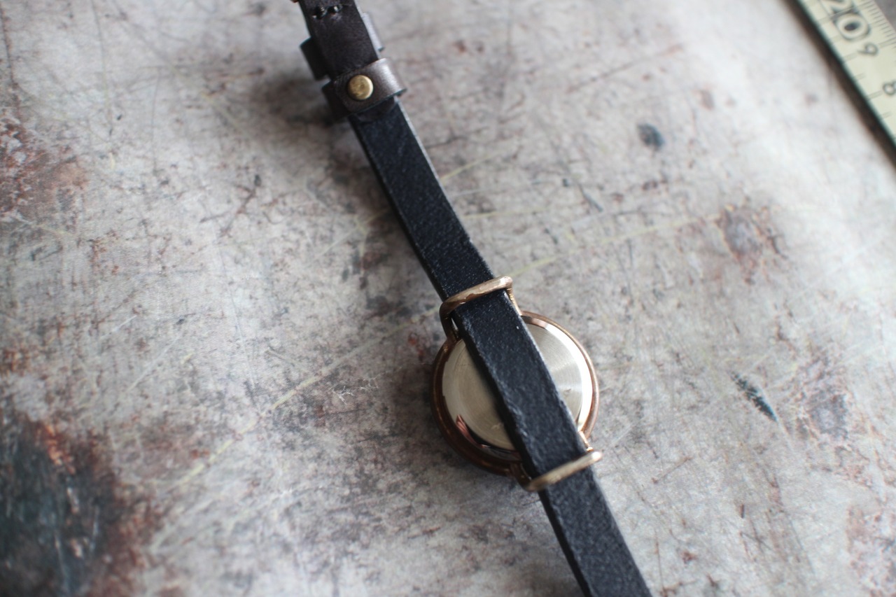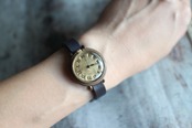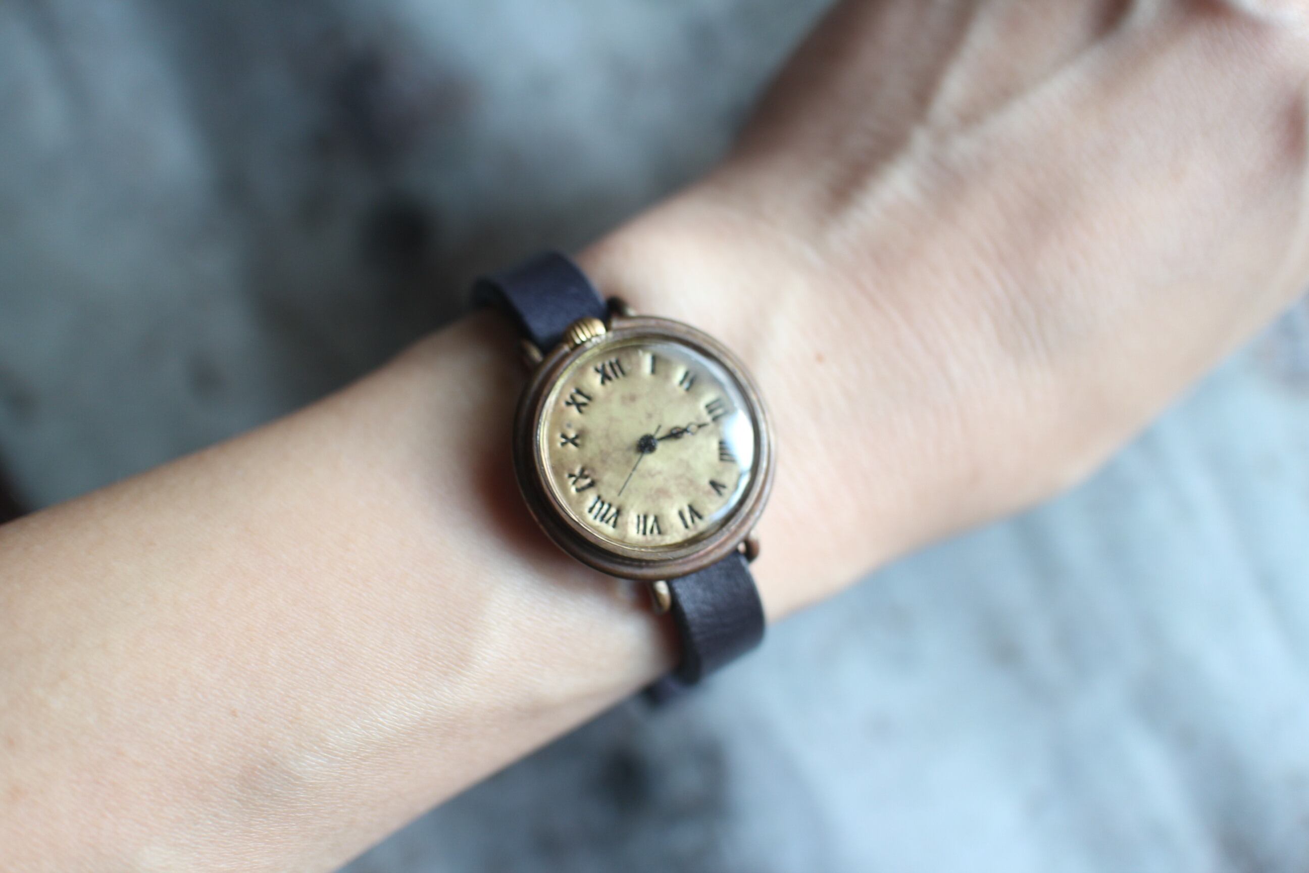 真鍮の刻印文字盤がシンプルですが存在感があり、どんなスタイルにも合わせやすいです。